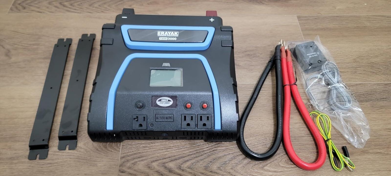 This power inverter is called the TANK 3000, and let me tell you this thing is a tank. My previous power inverter was a small 140W unit. Moving to this bad boy is a huge jump. 3000W is a ton of power. There were plenty of things that my last inverter couldn't handle. I don't think I'll ever come across that issue with this 3000W unit. This will really come in handy for when I go camping, for my blow up mattress, portable shower, as well as the little things like my phone and powe bank. This unit is versatile with 3 115v ac outlets and also a few usb outlets for the smaller stuff. Its got two fans on the back to help with any over heating. This is the first inverter ive used that has a screen, which is awesome to have real time info on hand. The cables it came with are really beefy 0AWG. Although I want to mount it in my cab under the seat, and the cables it came with are definitely too short for that so I'll be getting new cables for that. Overall I'm very excited to get to put this thing to use!