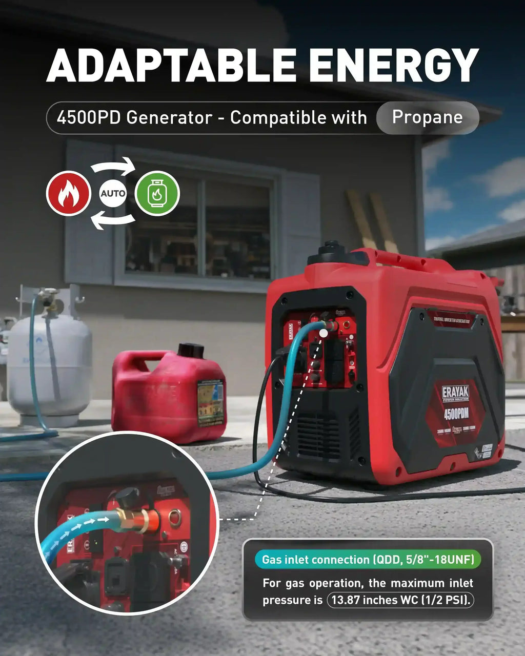 The Erayak 4500PD Portable Dual Fuel Inverter Generator delivers the same dependable performance as our new units—perfect for RV travel, camping, home backup, and outdoor work.